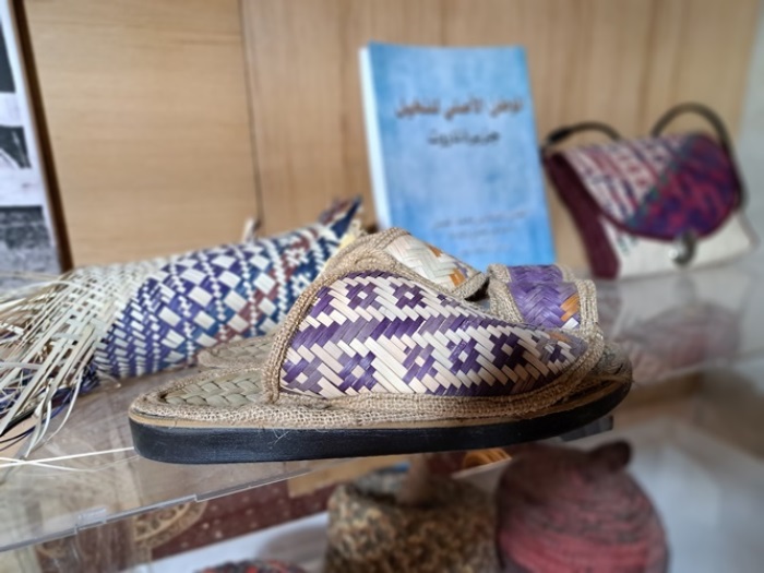 وقال التشكيلي محمد المصلي الذي يحتضن بضعة منتوجات مصنوعة من أجزاء النخيل في متحفه التراثي، أن ”النعل“ المصنوعة من الخوص قابلة للارتداء واستخدامها للمشي.