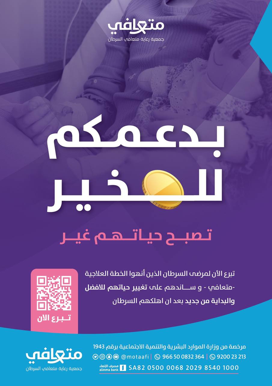 دعت جمعية ”متعافي“ الخيرية أصحاب الأيادي البيضاء إلى دعم المتعافين من السرطان والتبرع لهم.