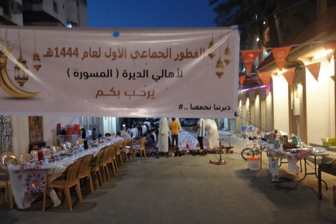 وأوضح أن شباب من سكان الحي قاموا بتنظيم الافطار في حي الديرة بأم الحمام. ورغم ضيق الأزقة والطرقات في الحي، فإن الفعالية جرت في منطقة قريبة منه.