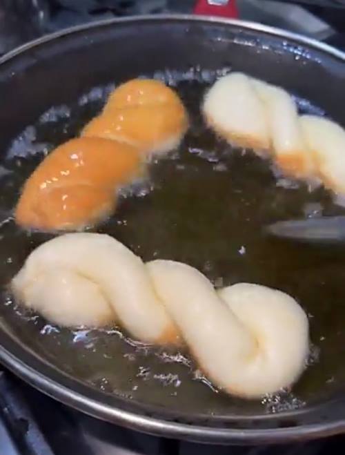 وتُشكّل العجينة بشكلٍ طولي كجدائل الشعر، بدلًا من حلقات الدونات المعتادة، وتكون طرية من الداخل ومقرمشة من الخارج.