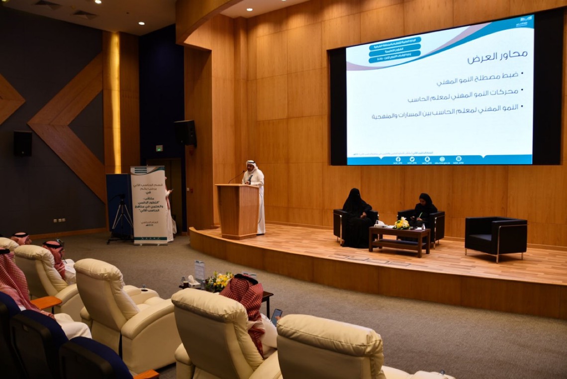 وسلط الضوء على عدة محاور انطلاقاً من محور ضبط مصطلح النمو المهني، ومحور محركات النمو المهني لمعلم الحاسب الالي، كذلك النمو المهني لمعلم الحاسب الالي بين المسارات والمنهجية، ودور المجتمعات المهنية في مواجهة تحديات النمو المهني.
