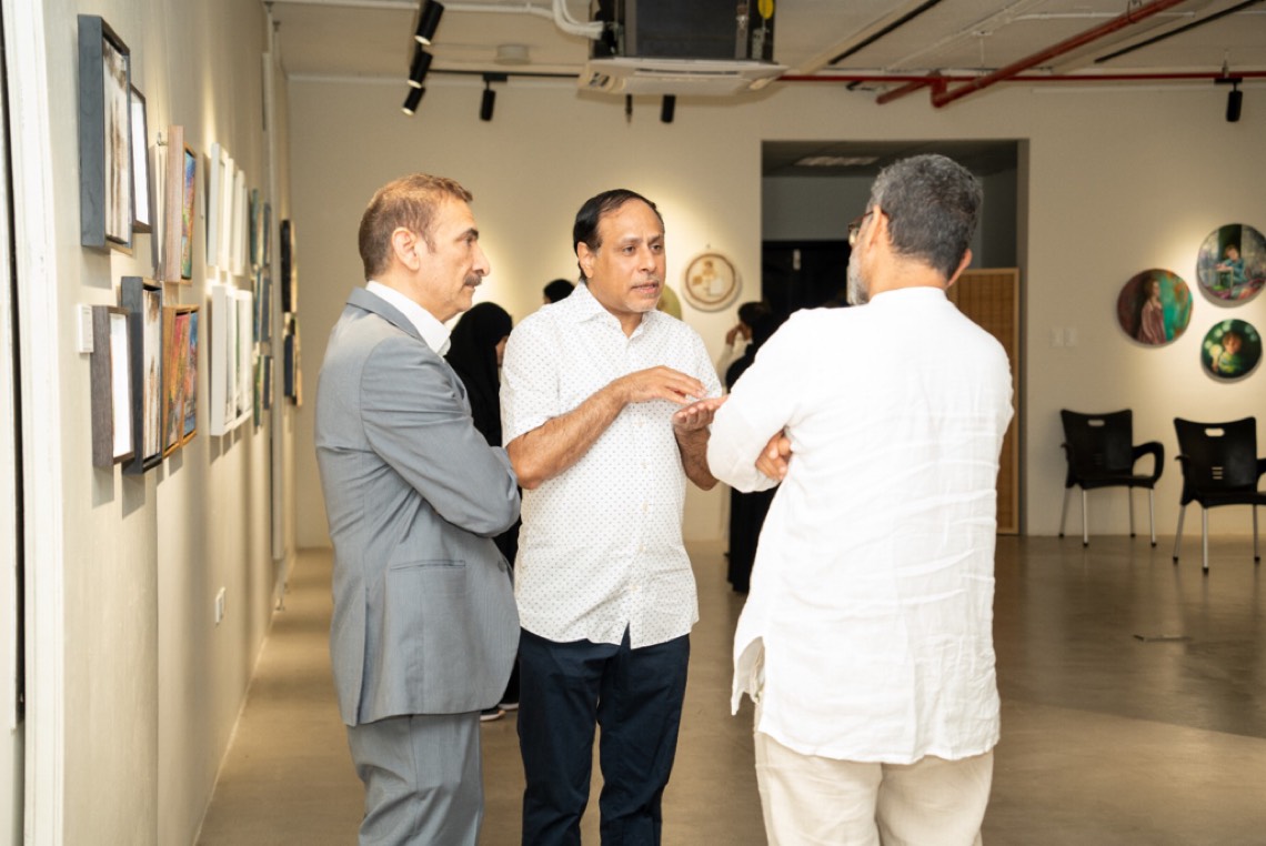 واُفتِتح المعرض، الذي يتضمن بين جوانبه عرضًا للأعمال الصغيرة في صالة علوي الخباز للفنون، وشارك في افتتاحه الفنان الرائد علي هويدي.