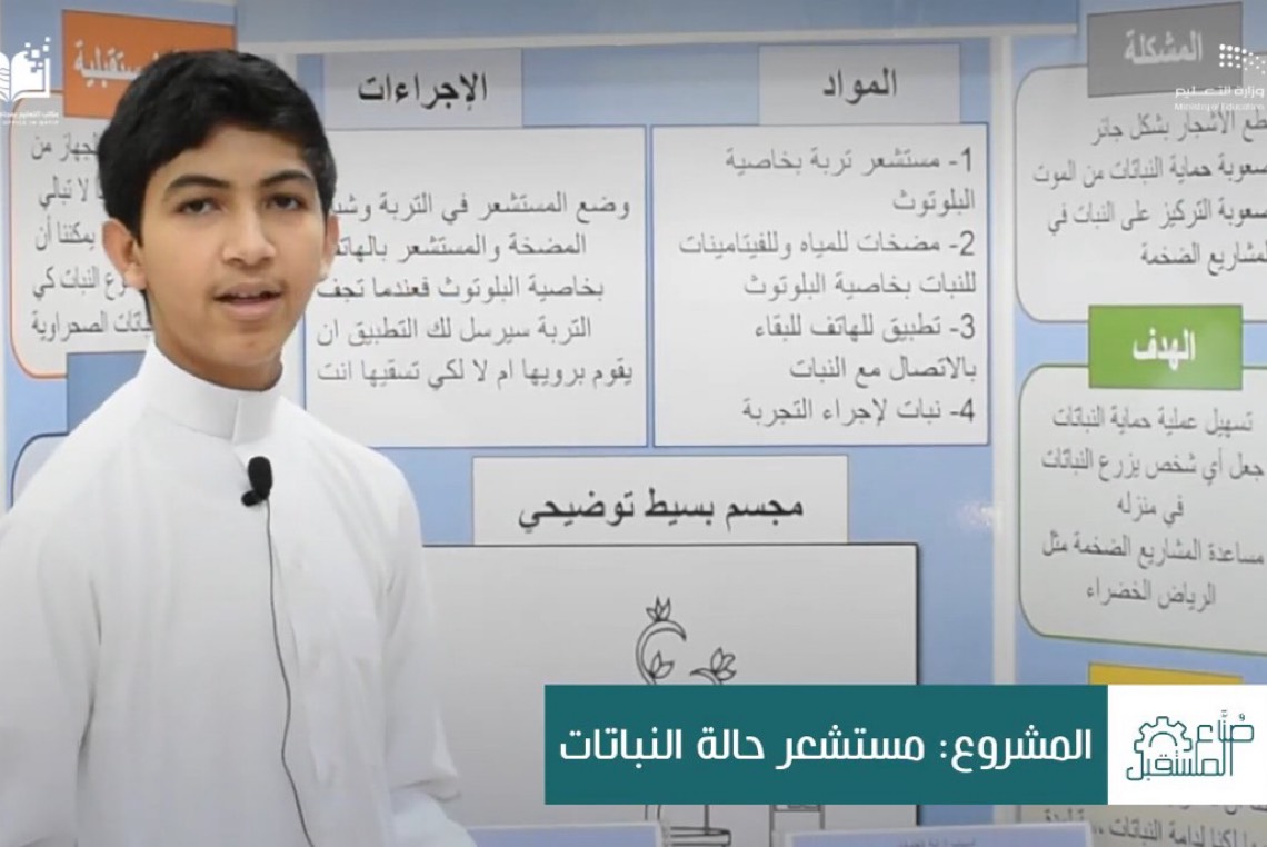 استعرض الطالب مجتبى عبدالإله التاروتي من مدرسة القطيف المتوسطة بالقطيف، مشروعه في مجال التقنية تحت عنوان: مستشعر حالة النباتات، والذي يهدف إلى تسهيل حماية النباتات وزراعتها بالمنزل ومساعدة المشاريع الضخمة مثل «الرياض الخضراء»