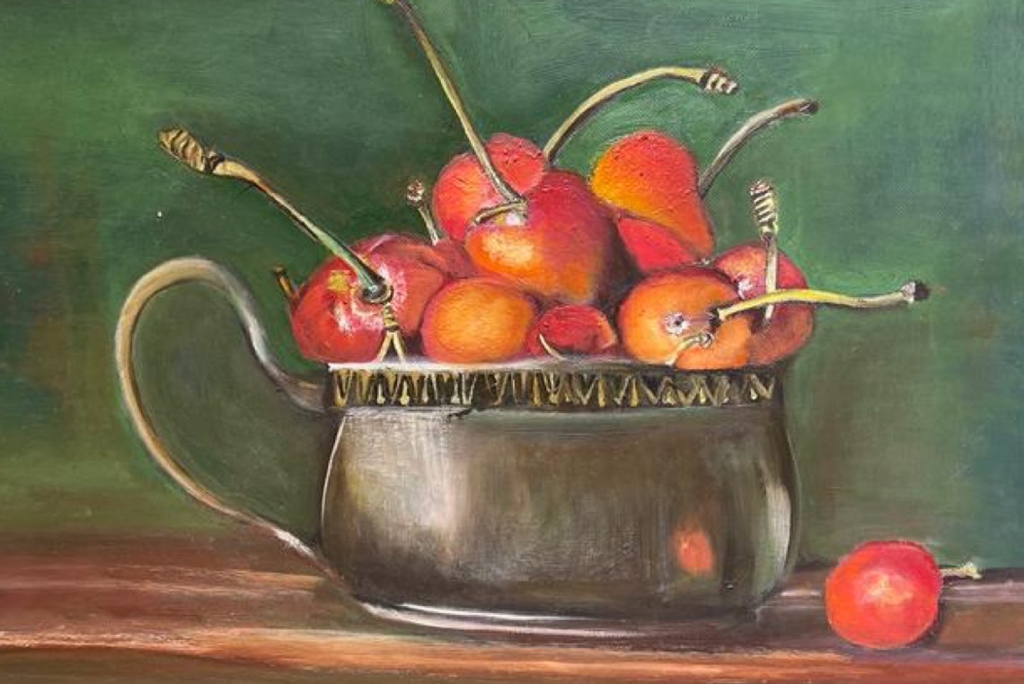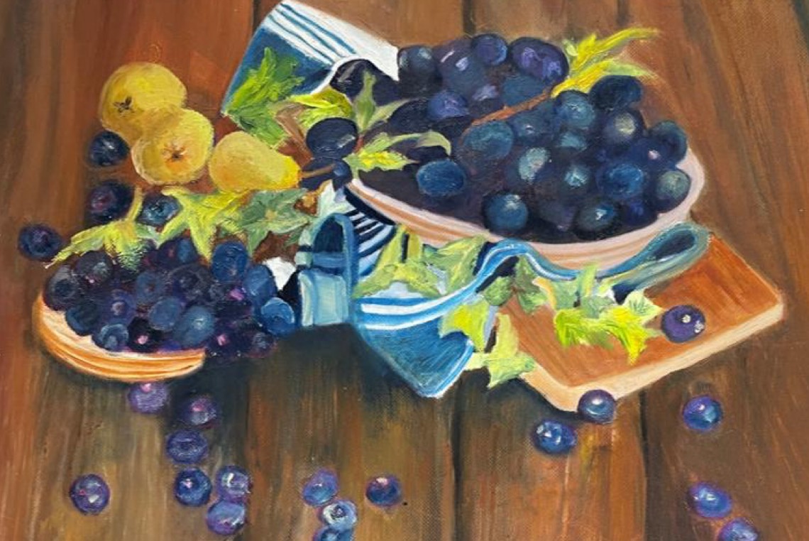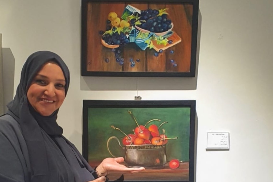 تشارك الفنانة ليلى مال الله في معرض ”روازن 3“، بلوحتين تشكيليتين تحت سماء مدرسة الطبيعة الصامتة بعنوان ”فاكهة“، موضحةً أنها تسير على أثر فناني العالم.