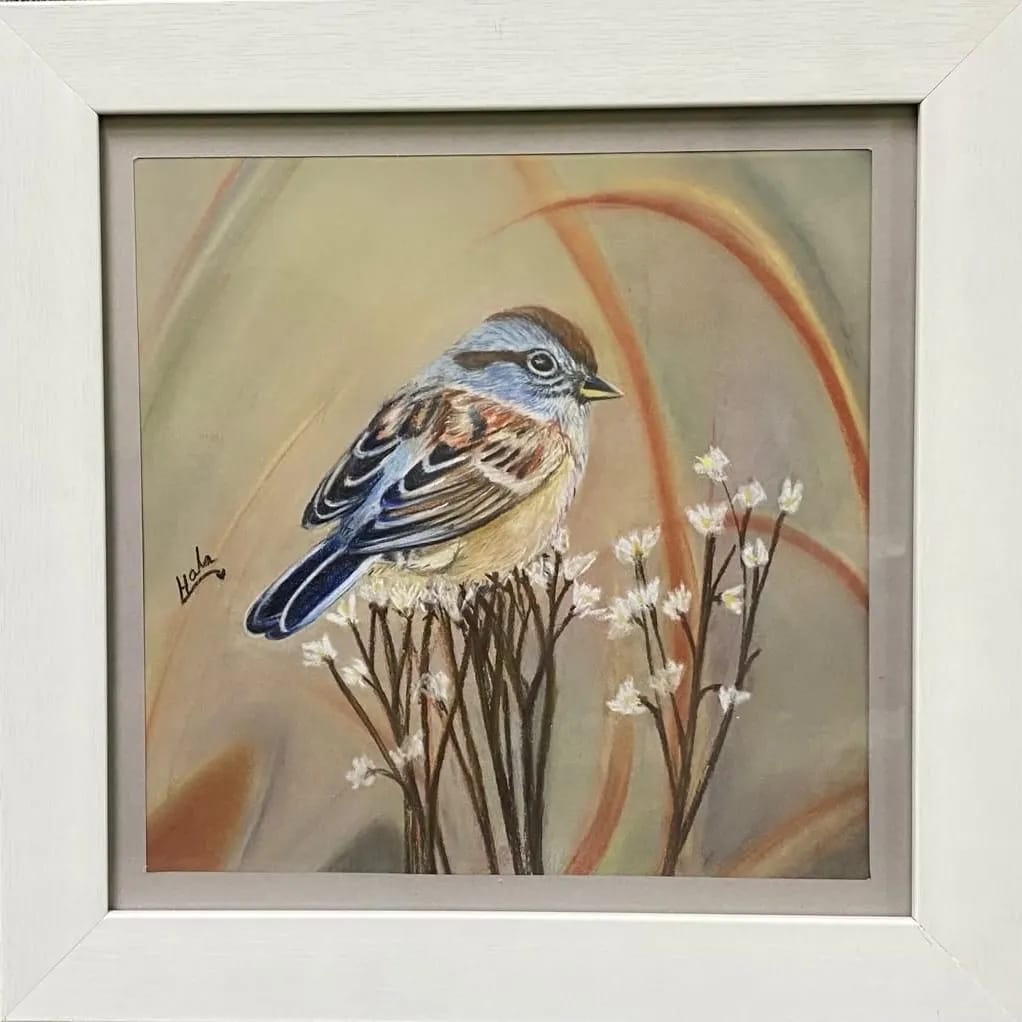 توسطت العصافير لوحات التشكيلية هالة الدشيشي، والتي شاركت بثلاثة أعمال في معرض ”روازن 3“ الذي أقامته جماعة الفن التشيكلي، وذلك عبر تناغم لوني مفعم بتفاصيل الطبيعة، مع تعانق أوراق الأشجار والزهور.