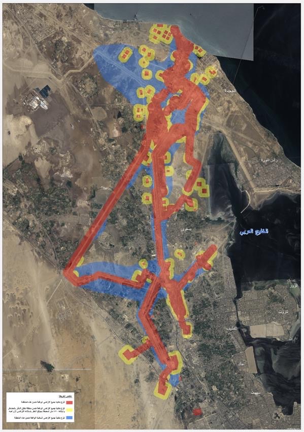 وشمل القرار نزع الأراضي الواقعة ضمن نطاق التأثر بالمخاطر، والأراضي غير المتوافقة مع الاستخدامات الآمنة للمواقع المحيطة بالآبار وخطوط أنابيب الإنتاج، وفقاً للخريطة المعلنة.