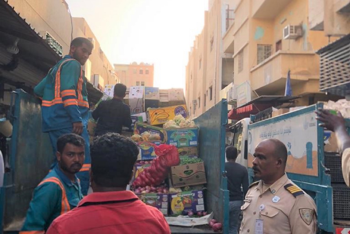 وقال: ان الفرق الرقابية قامت خلال حملتها الميدانية ضمن جولة رصد المخالفات، بمعالجة المواد المصادرة من بضائع مختلفة؛ من خلال تسليمها بعد مصادرتها للجمعيات الخيرية كبضائع الملابس والأجهزة الإلكترونية، وتسليم الخضار والفواكه الصالح منها إلى بنك إطعام.