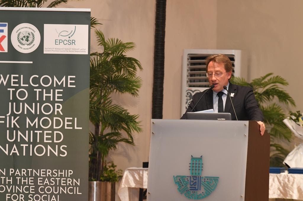 وشهد الحفل الختامي حضور سفير الجمهورية الفرنسية لدى المملكة لودوفيك بويّ، ومدير عام فرع وزارة البيئة والمياه والزراعة بالمنطقة الشرقية م. عامر المطيري، ووكيل أمين الشرقية للخدمات محمود الرتوعي، ومساعد مدير عام تعليم المنطقة الشرقية للبنين د. عبد الرحمن الزهراني، وأمين عام مجلس المنطقة الشرقية للمسؤولية الاجتماعية ”ابصر“ لولوة الشمري.