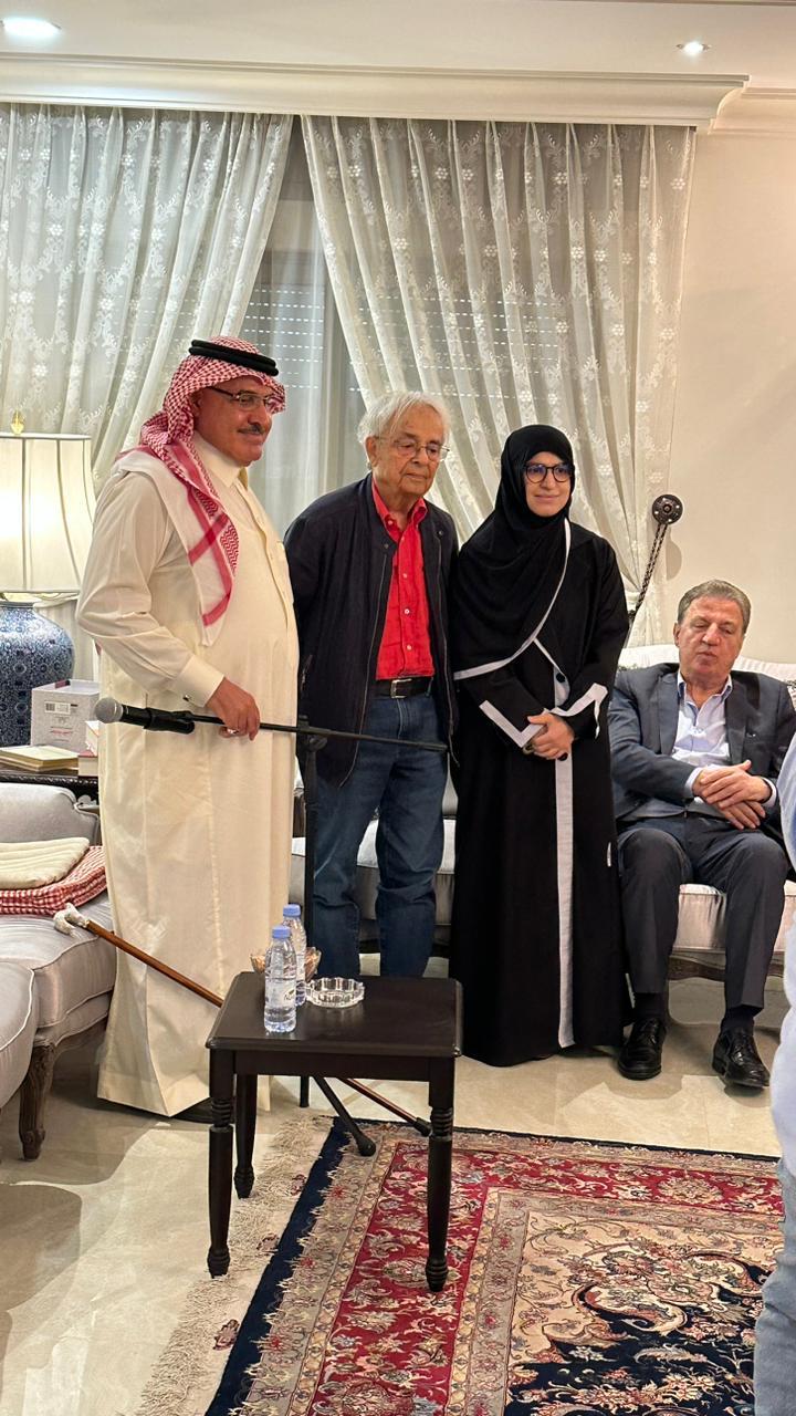 ولقائه بابنتيه أرواد ورهام ملاطفا له بالترحيب بأرواد التي كانت بمعية والدها في رحلته للسعودية وأسم ابنته اوراد حيث أشاد الأستاذ نصر الله بعمق العلاقة المتجذرة التي جمعتهما والتي أشار لها أدونيس في طيات الحديث قائلا ها أنا أعود من داري لداري الذي يقلني بين هؤلاء المثقفين والشعراء الذين يرشون ابتسامة الفرح.