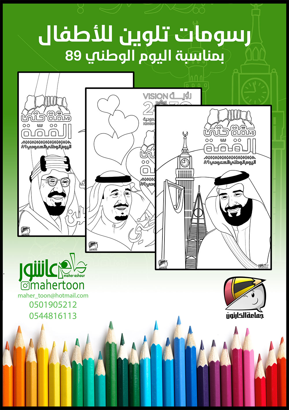 رسومات تلوين للأطفال بمناسبة اليوم الوطني 89
