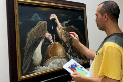 «نسور غاصبة للقدس المحتلة».. لوحة للتشكيلي أبو حسين