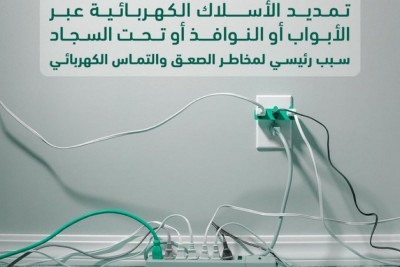 ”الدفاع المدني“: تمديد الأسلاك الكهربائية سبب رئيسي لمخاطر الصعق والتماس كهربائي