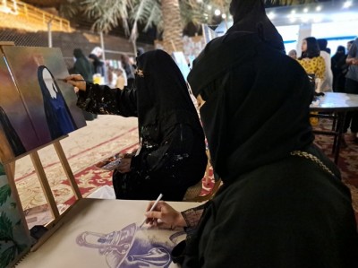 التشكيلية الحبيب وابنتها تشاركان بالرسم المباشر في «بستان قصر تاروت»