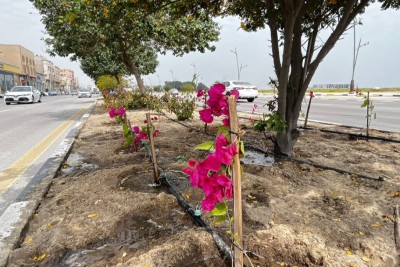 بطول 2500 م2.. بدء المرحلة الأولى لتجميل وتشجير طريق الخليج العربي