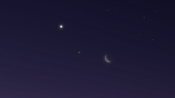 قال رئيس الجمعية الفلكية بجدة المهندس ماجد أبوزاهرة: إن مراقبي السماء في السعودية والوطن العربي يستعدون لمشاهدة منظر جميل فجر غد الأحد؛ حيث سيمر القمر بالقرب من كوكبين في نظامنا الشمسي: المريخ، والزهرة، قبل حوالي ساعتين ونصف من شروق الشمس. وأضاف: ”انتظام هلال القمر مع الزهرة شديد السطوع، والمريخ الباهت سيكون على قبة السماء بالأفق الجنوبي الشرقي، وهي مشاهدة بالعين المجردة بدون الحاجة إلى معدات رصد، وسيكون القمر في مرحلة الهلال... |
