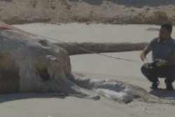 جنوح حوت نافق إلى شاطئ رأس تنورة.. ومركز الأحياء البحرية يتدخل