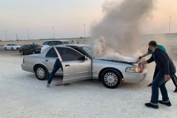 نجا شاب من الموت اثر احتراق مركبة كان يستقلها على الكبري المؤدي الى مدينة سيهات على الطريق السريع. وكان الشاب يقود سيارته وفوجئ بنشوب حريق بمحركها، فقام على الفور بإيقافها والنزول ... |