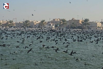 صور.. أسراب الطيور المهاجرة تحول كورنيش القطيف إلى لوحة طبيعية آسرة