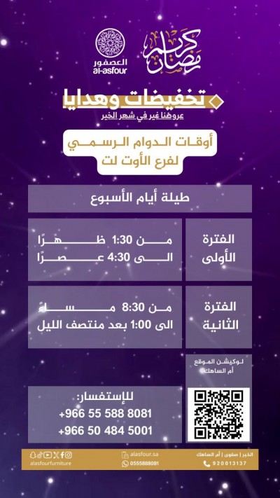 العروض تشمل جميع الـ 18 فرع بالمنطقة الشرقية بالاضافة إلى الموقع الالكتروني