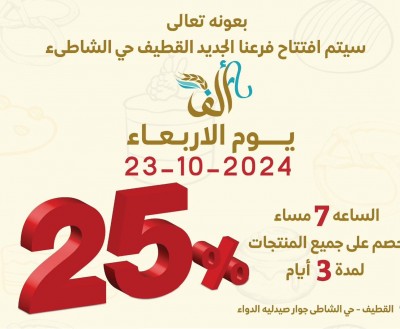 الافتتاح الأربعاء 23 أكتوبر وخصم 25% لمدة 3 أيام