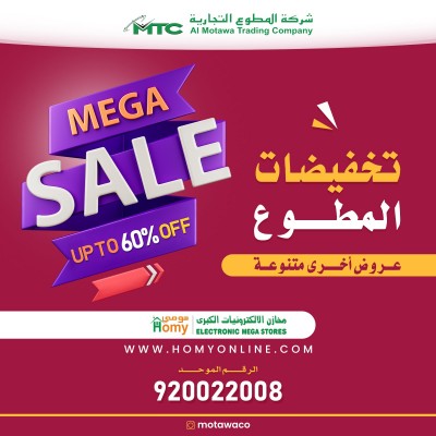 جميع العروض لنهاية شهر سمبتمبر أو حتى نفاذ الكمية