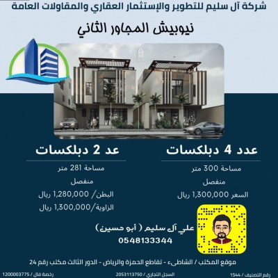 عروض شركة آل سليم للتطوير والاستثمار العقاري دانة الرامس D المساحة: 345 متر دورين وملحق |