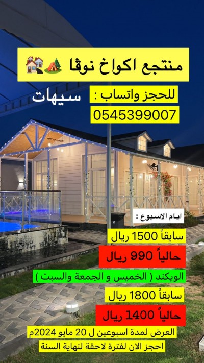 ”منتجع اكواخ نوفا“ للإيجار اليومي مضيئة كما لو أنها ”نجمة“ يسري العرض حتى 20 مايو الانستغرام: https://www.instagram.com/nova_cottage_resort... |