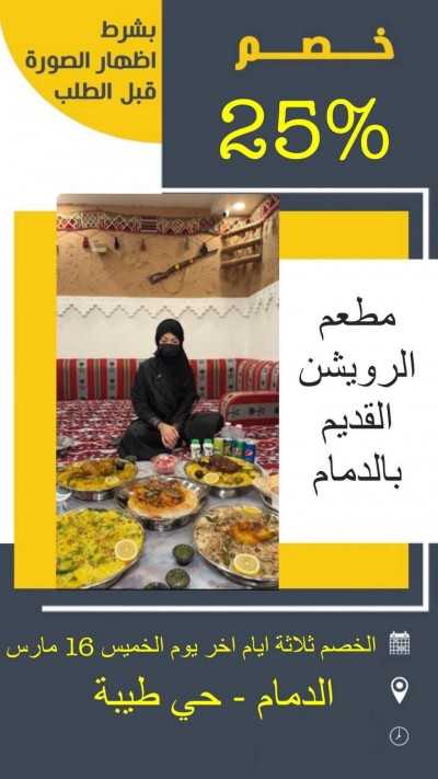 البساط أحمدي.. والخصم 25% في مطعم ”الرويشن“ القديم بالدمام طبخات شعبية الذبيحة من العميل والطبخ في المطعم مندي - برياني - مقلوبة مصادر الدجاج: سنابل هجر / اليوم موقعنا: https://maps.app.goo.gl/how5s76fpM5B6dA96 ... |