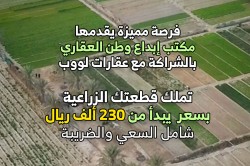 فرصة مميزة يقدمها مكتب إبداع وطن العقاري بالشراكة مع عقارات لووب