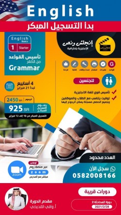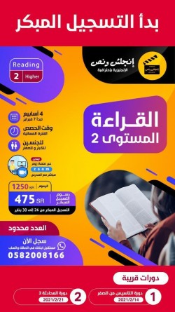العرض البركاني🌋 - شي يشبه السحر عرض 475 ينتهي اليوم🌋 من وين ابدأ في مشوار تعلم اللغة الإنجليزية ؟ 🇺🇸 🇺🇸 دورة مخصصة لتعليم القراءة باللغة الإنجليزية 🇺🇸 للكبار والصغار Reading 2 - Higher عرض التسجيل المبكر ينتهي اليوم تفاصيل الدورة: الفئة العمرية : جميع الأعمار للجنسين ... |
