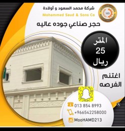 عروض مصنع محمد السعود للحجر الصناعي والسراميك سعر الحجر الصناعي ب 25 ريال فقط شامل الضريبة مدة العرض : اسبوعين العرض ساري حتى 15 فبراير منتجاتنا : حجر واجهات مداخل حدائق |
