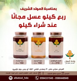 "مؤسسة واحة البتول للعسل والأغذية الصحية" متخصصون في العسل الطبيعي «المحلي والمستورد» وكذلك التمور والأغذية العضوية.... جميع أنواع العسل لدينا تخضع لفحص المختبرات المعتمدة ومن المصادر الموثوقة.. عروض قوية بمناسبة مولد السيدة فاطمة الزهراء.. ربع كيلو عسل مجانا عند شراء كيلو .. العرض ساري حتى 30 جمادي الثاني أو حتى نفاذ الكمية.. تسعدنا خدمتكم 4 عصرًا إلى 11 ليلًا فروعنا: ... |