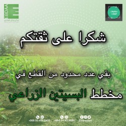 بقى عدد محدد من القطع في مخطط البسيتين الزراعي.. لا تنتظر فالفرص لا تعوض