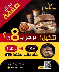 البرجر اذا تأخذها صفقة تصير من 19 ريال إلى 12 ريال... " بورتوفينو" مصدر اللحوم: ملحمة هرفي للحوم الطازجة. |