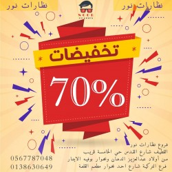 عروض نهاية العام وخصم 70 % من «نظارات نور» على موديلات 2020.. تصفية شاملة على النظارات الطبية موديلات 2020 📍العنوان: فروع نظارات نور |