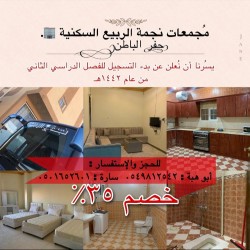 %35 بالمائة خصم من مجمعات نجمة الربيع السكنية بحفر الباطن.. للفصل الثاني