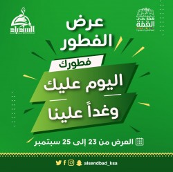 لاتفووت عروض اليوم الوطني 90 من مطعم ومطبخ السندباد. فطورك اليوم عليك وبكرة علينا من الساعة 7 صباحا - الساعة 11 صباحا. من قائمة الفطور الشعبي أو الشرقي كبدة - عدس وفول - فلافل - أجبان متنوعة. أومليت بيض وشكشوكة - وسلطة. ... |