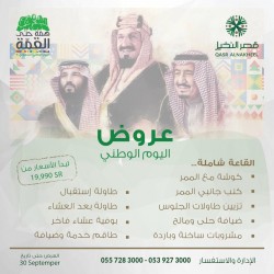 بمناسبة #اليوم_الوطني يقدم قصر النخيل عرض خاص حيث يقدم مجمع قاعات قصر النخيل العديد من الخدمات الراقية خمس قاعات ملكية مطبخ مركزي |
