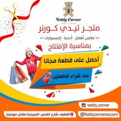 كل عام وانتم بخير بمناسبة عيد الغدير الاغر سيتم افتتاح متجر تيدي كورنر للاطفال الذي يقدم لكم ملابس «بجامات، بلايز، بناطلين، احذية يومية ورياضية، واكسسوارات بناتية» بأسعار مغرية وبمناسبة الافتتاح يتقدم متجر تيدي كورنر بعرض اشتري قطعتين واحصل على القطعة الثالثة مجانا شارع القدس، المجيدية مقابل موبايلي |