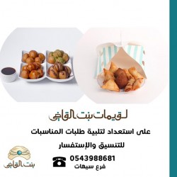 لقيمــات بنـت القاضــي يعلن عن استعداده لتجهيز وجبات المناسبات لقيمات وموالح «سمبوسة - كبة - سبرنج رول» «فرع سيهات فقط» الموقع: سيهات - حي الدانة - شارع عمر بن عبد العزيز للتواصل: 0543988681 ... |