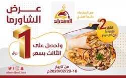 لا تفوّت عروض مطعـم ومطبــخ السندبــاد عرض الشاورما: اشتر حبتين من أي نوع من الشاورما واحصل على الثالثة بريال واحد فقط. ينتهي العرض في 29 فبراير2020.. مطعم ومطبخ السندباد على استعداد لتجهيز الولائم وضيافة المناسبات بأسعار ... |