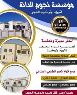 لا تفوتك عروض مؤسسة ”نجوم الدانة“ للحجر توريد وتركيب جميع انواع الحجر الطبيعي والصناعي «أسعار مميزة» 🔸 حجر سوري بجميع أنواعه 🔸 حجر اردني بجميع أنواعه 🔸 حجر صناعي مضمون 15 سنة 🔸 عمل ... |