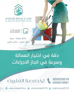 مكتب آل عبد العال للإستقدام الخيار الأمثل للعمالة المنزلية ما يميزنا.. سرعة في انجاز الاجراءات و دقة في اختيار العمالة نخفف عليك أعباء بيتك نستقبل العمالة من المطار إلى بيتك تخصصنا الفلبين عاملات منزلية - مربيات -... |
