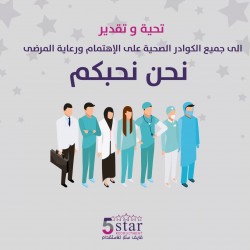 تحية وتقدير إلى جميع الكوادر الصحية على الإهتمام ورعاية المرضى.. من ”فايف ستار“