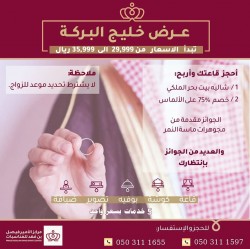 👑مركز الأمير فيصل بن فهد للمناسبات يقدم لكم عرض خليج البركة... للحصول على حفل زفاف فاخر، بفخامة ملكية، مجهز بأعلى مستوى من الجودة والذوق الرفيع، وأكثر ما يميز قاعاتنا اطلالتها الملكية ... |