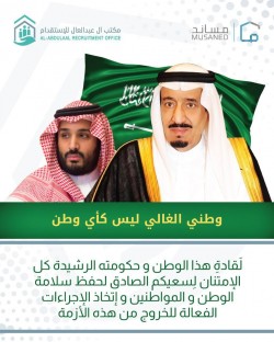 وطني الغالي ليس كأي وطن ... لقادة هذا الوطن وحكومته الرشيدة كل الإمتنان لسعيكم الصادق لحفظ سلامة الوطن |