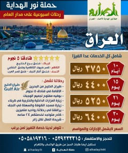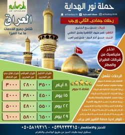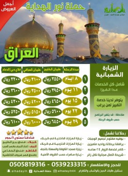 تعلن حملة ”نور الهداية“ عن أجمل العروض للزيارة الشعبانية إلى العراق