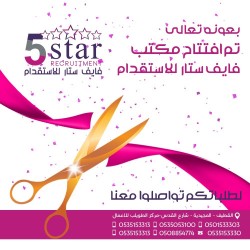 بعون الله تعالى تم إفتتاح مكتب فايف ستار للإستقدام.. نحن على أتم الأستعداد لتلبية جميع طلباتكم ولإستفساراتكم تواصلوا معنا على الأرقام الموجودة في الإعلان. هاتف المكتب: 0535153330 جوال وواتسب: 0535153313 - 0535053100 - 0501533303 - ... |