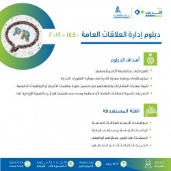 أهداف الدبلوم: 🌟 تأهيل كوادر متخصصة أكاديمياً ومهنياً. 🌟 تمكين كفاءات وطنية مهنية على مواكبة التطورات الحديثة. 🌟 تنمية مهارات المشاركات واتجاهاتهم نحو تحسين صورة منظمات الأعمال أو المنظمات الحكومية. 🌟 التعريف بأهمية العلاقات ... |