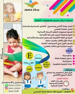 مركز جسور لصعوبات التعلم يقدم لكم حزمة من البرامج والدورات للكبار والصغار في شهر شعبان.. كونوا معنا صارت عندك سيارة؟ وما تعرفي كيف تتصرفي معها؟ احنا نعلمك هالشيء،، في دورة الميكانيكا البسيطة صورة ... |